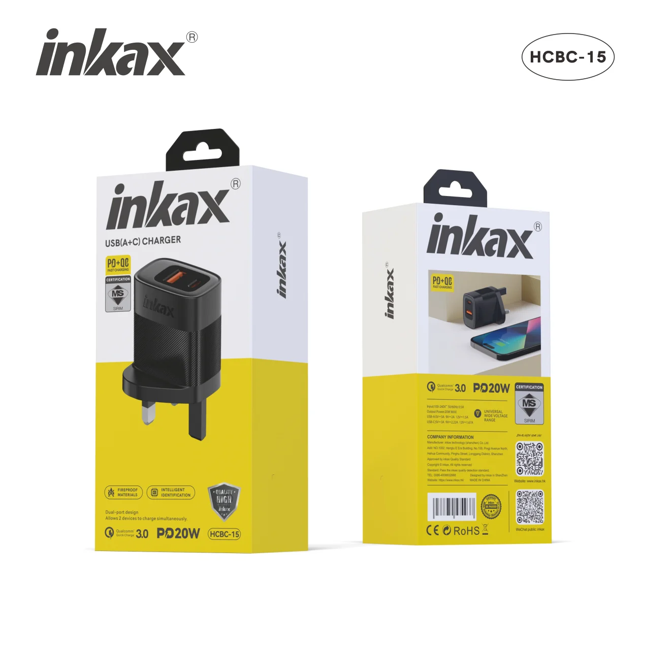 HCBC-15-UK A+C 20W Fast Charging Wall Charger